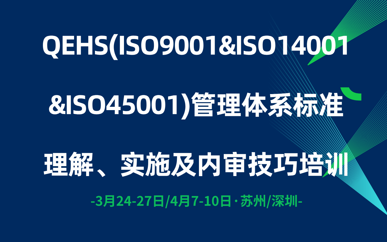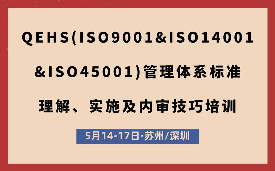 【4月】qehs(iso9001&iso14001&iso45001)管理体系标准理解、实施及内审技巧培训(苏州/深圳·线下)