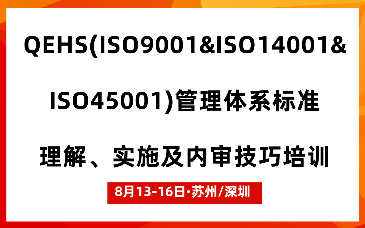 qehs(iso9001&iso14001&iso45001)管理体系标准理解、实施及内审技巧培训(苏州/深圳·线下)