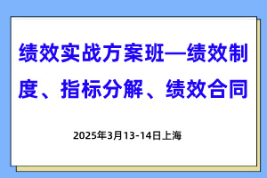 【9月】绩效实战方案班—绩效制度、指标分解、绩效合同(上海·线下)