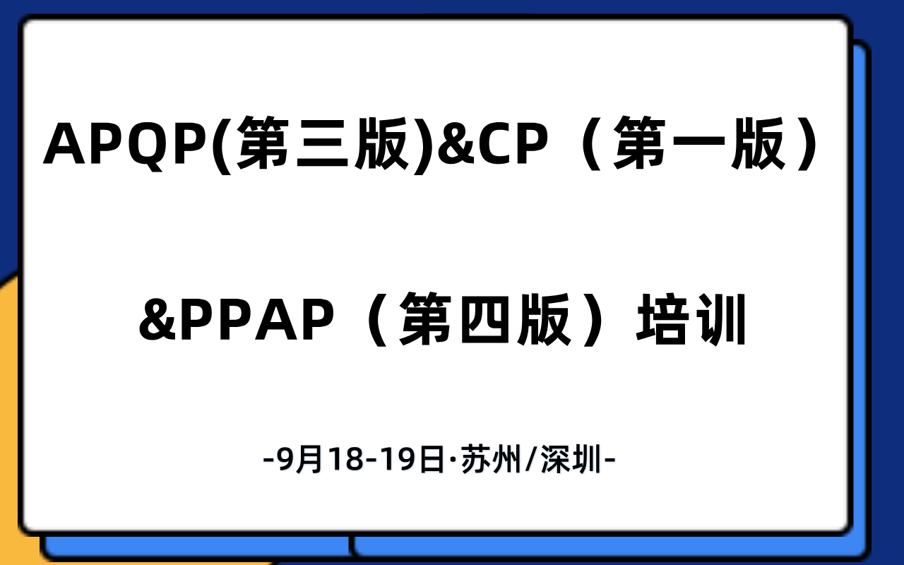 【9月】apqp(第三版)&cp(第一版)&ppap(第四版)培训(苏州/深圳·线下)