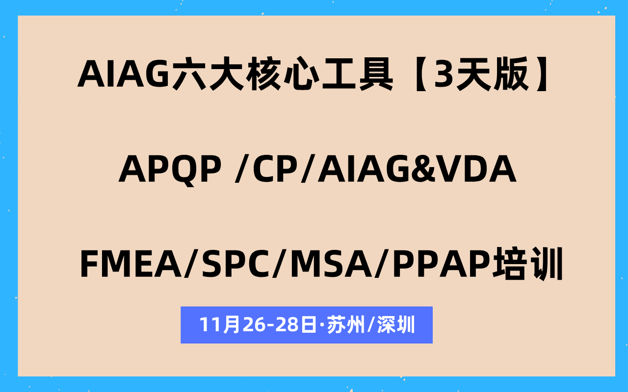 【11月】aiag六大核心工具【3天版】apqp /cp/aiag&vda fmea/spc/msa/ppap培训(苏州/深圳·线下)