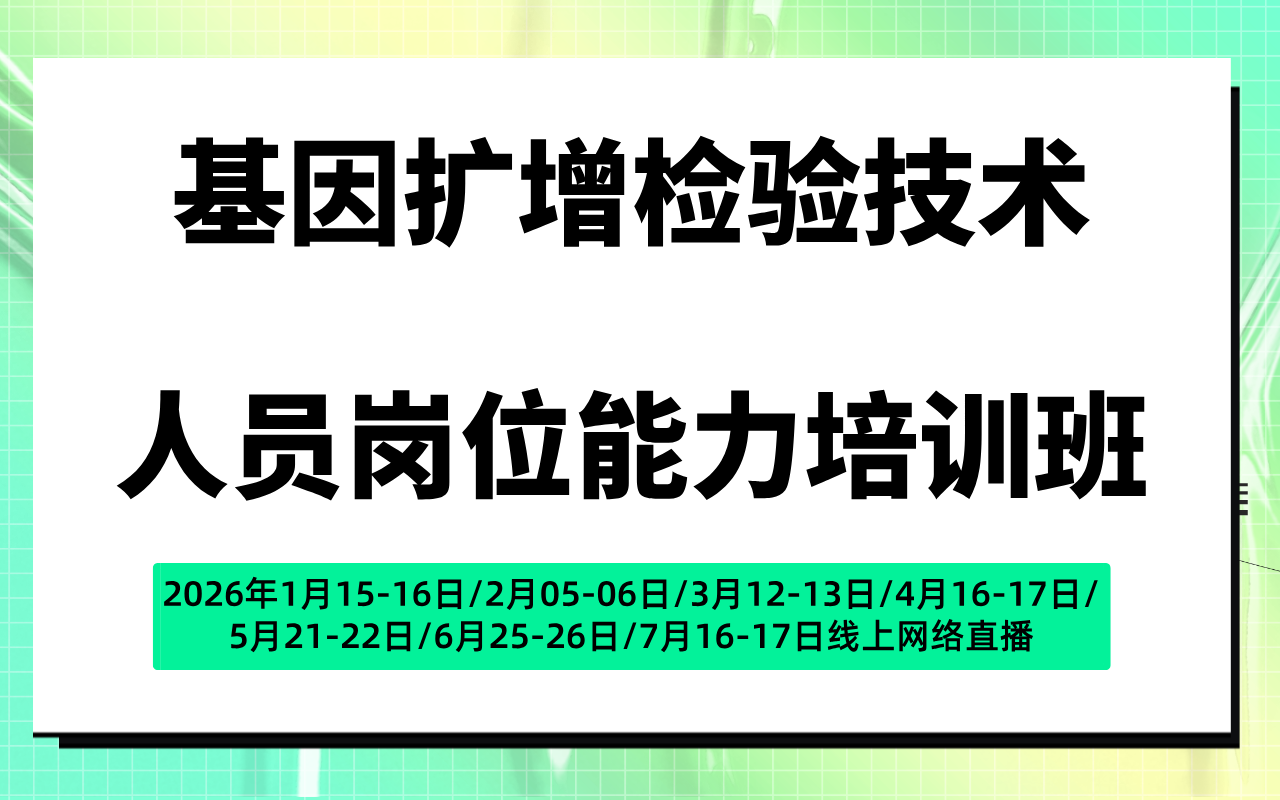 【2026年01月】基因扩增检验技术人员岗位能力培训班(线上网络直播)