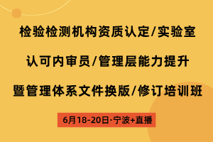 检验检测机构资质认定/实验室认可内审员/管理层能力提升暨管理体系文件换版/修订培训班(宁波·线下 线上网络直播)