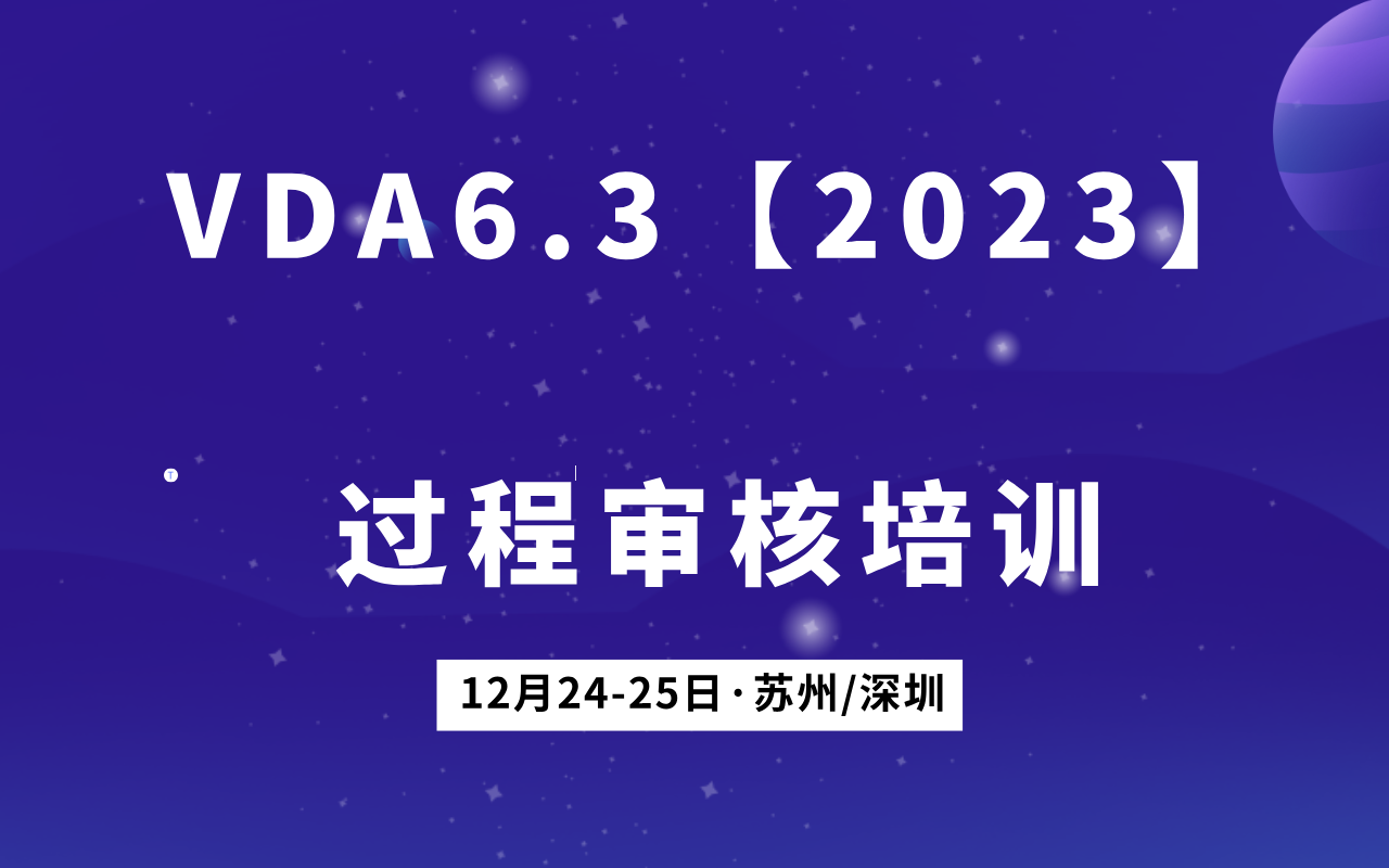 【12月】vda6.3【2023】过程审核培训(苏州/深圳·线下)