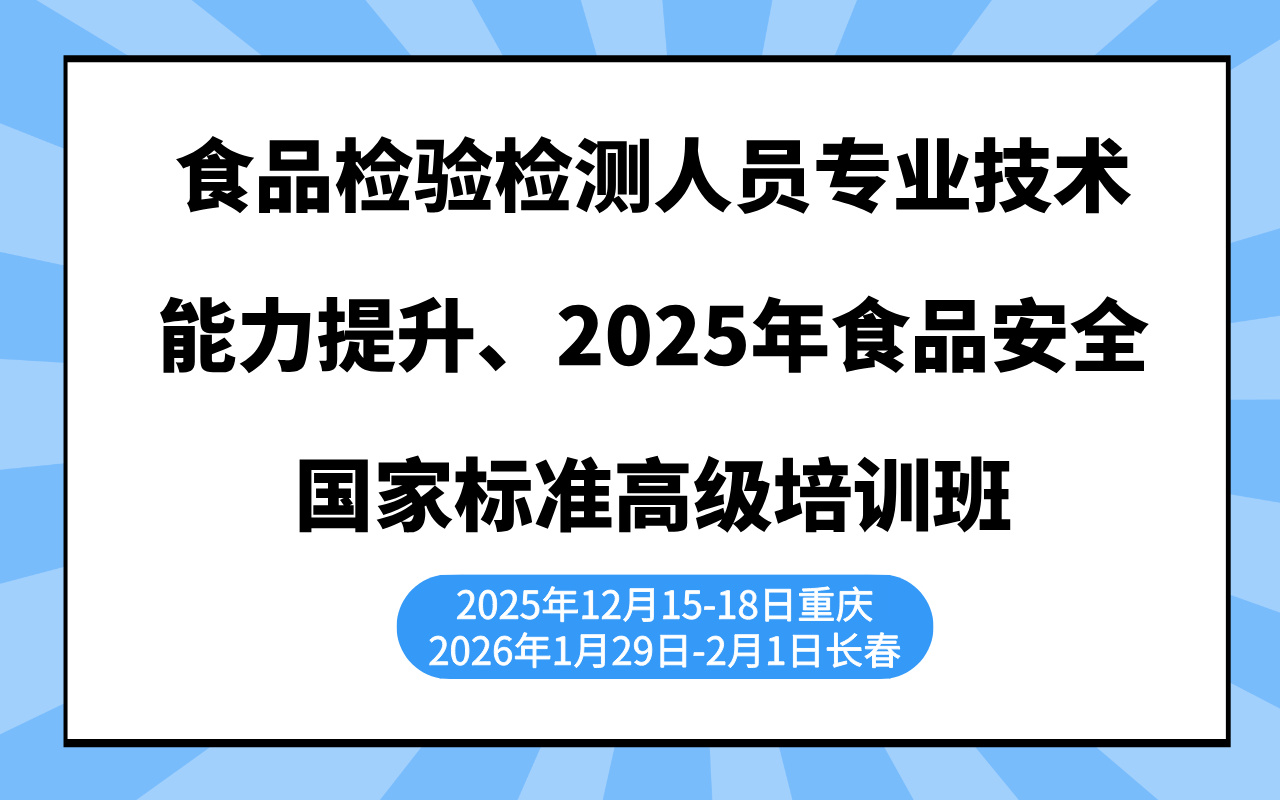 食品检验检测人员专业技术能力提升、2025年食品安全国家标准高级培训班(长春·线下)
