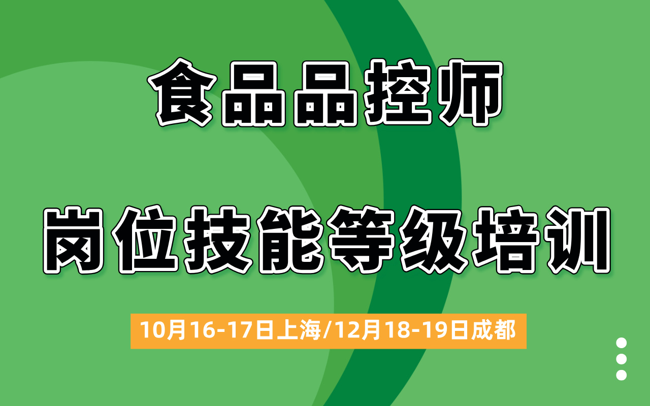 【10月】食品品控师岗位技能等级培训(上海·线下·食品伙伴网)