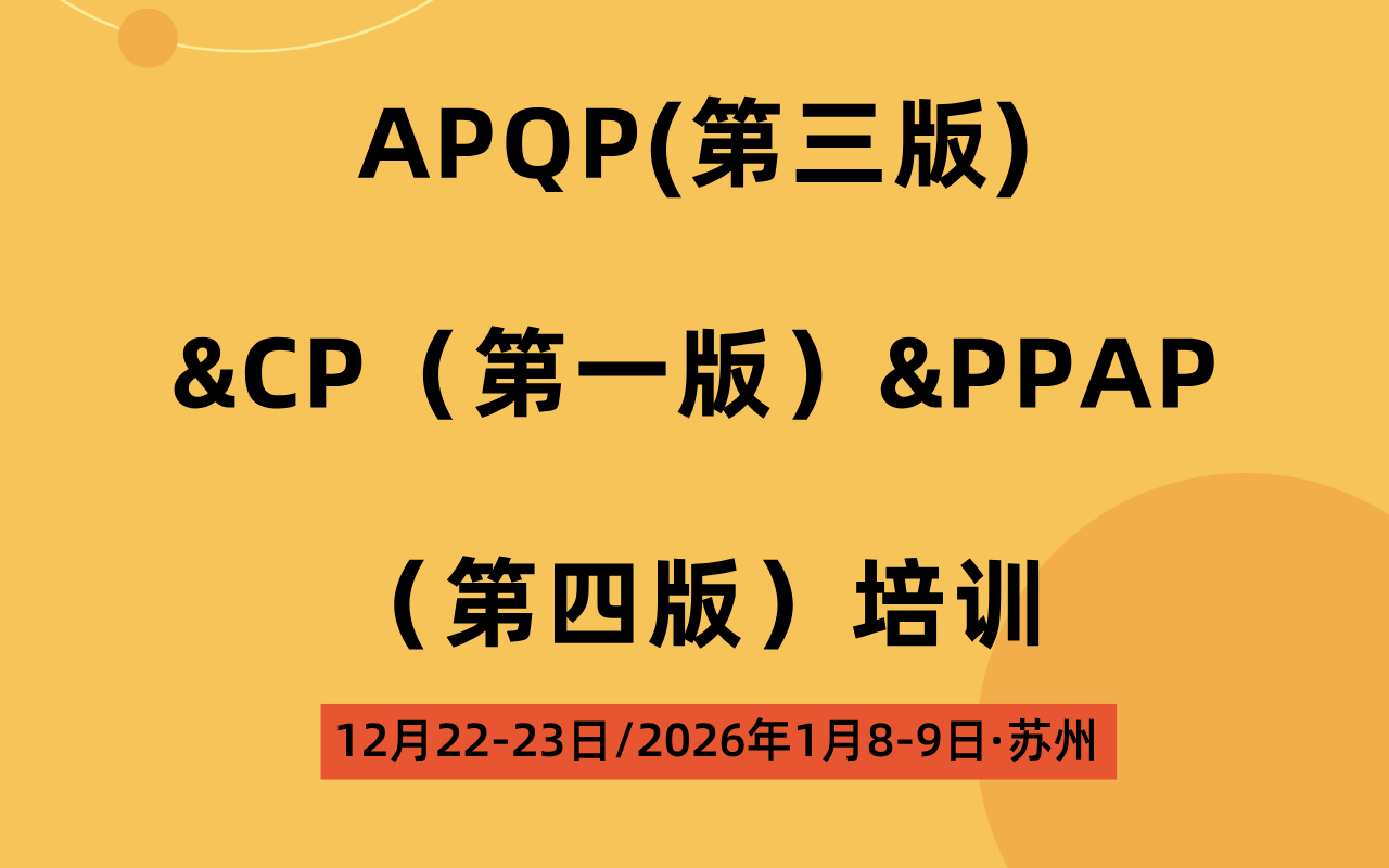 【2026年1月】apqp(第三版)&cp(第一版)&ppap(第四版)培训(苏州·线下)