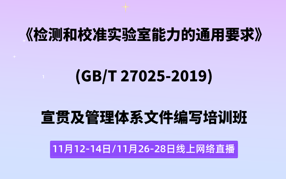 【11月】《检测和校准实验室能力的通用要求》(gb/t 27025-2019)宣贯及管理体系文件编写培训班(线上网络直播)