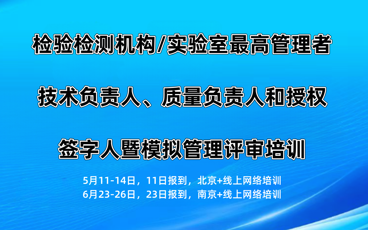 【5月】检验检测机构/实验室最高管理者、技术负责人、质量负责人和授权签字人暨模拟管理评审培训(北京 线上网络培训)