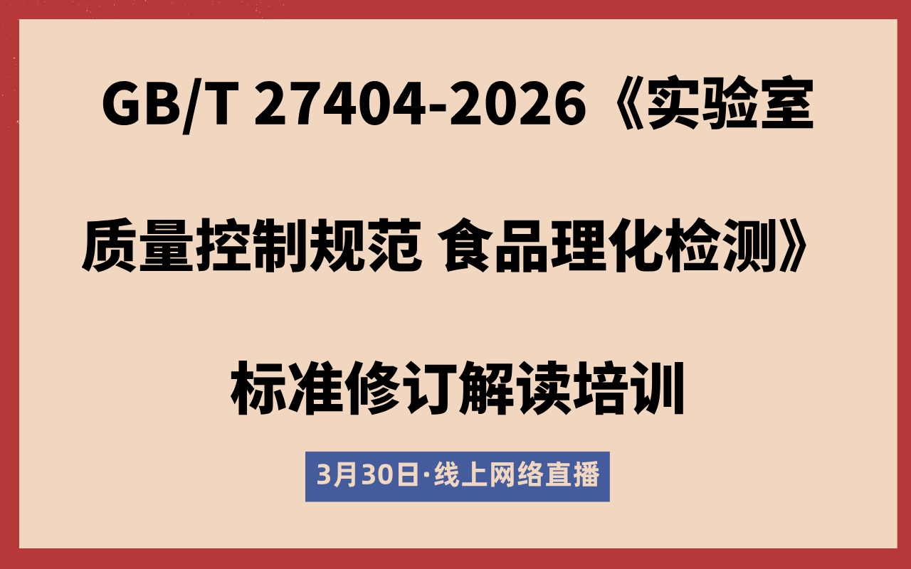 gb/t 27404-2026《实验室质量控制规范 食品理化检测》标准修订解读培训(线上网络直播)