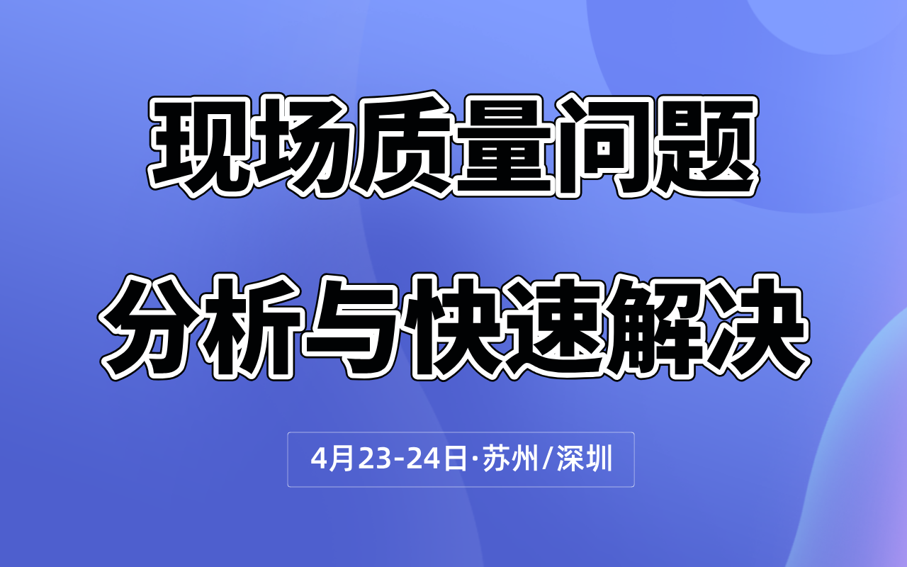 【4月】现场质量问题分析与快速解决(苏州/深圳·线下)
