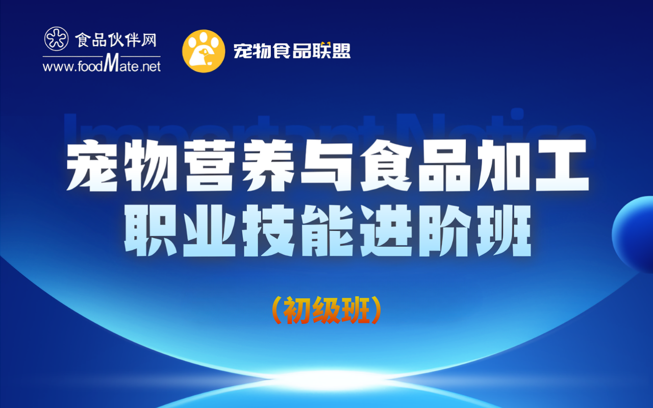 宠物营养与食品加工职业技能进阶班(初级班·上海 线上网络培训·人满开班·食品伙伴网)