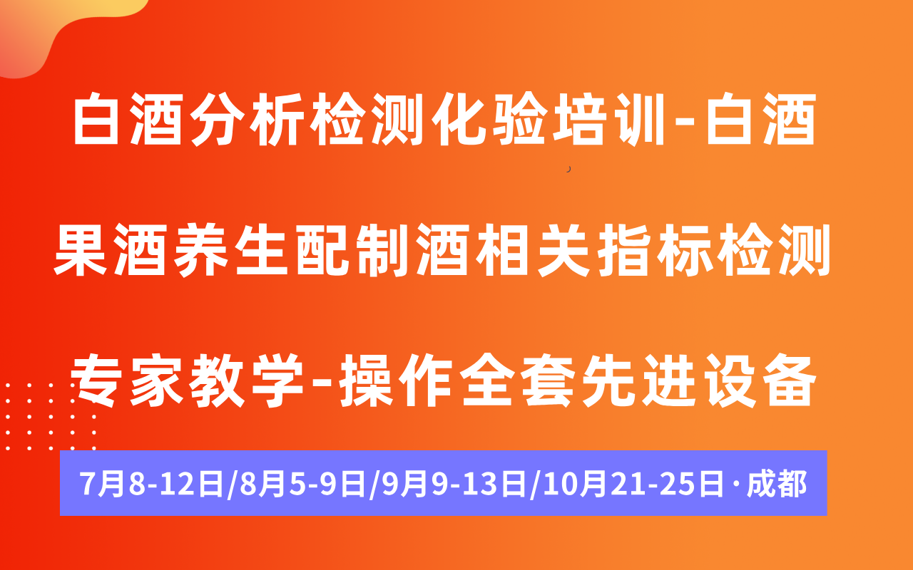 【7月】白酒分析检测化验培训-白酒果酒养生配制酒相关指标检测专家教学-操作全套先进设备(成都·线下)