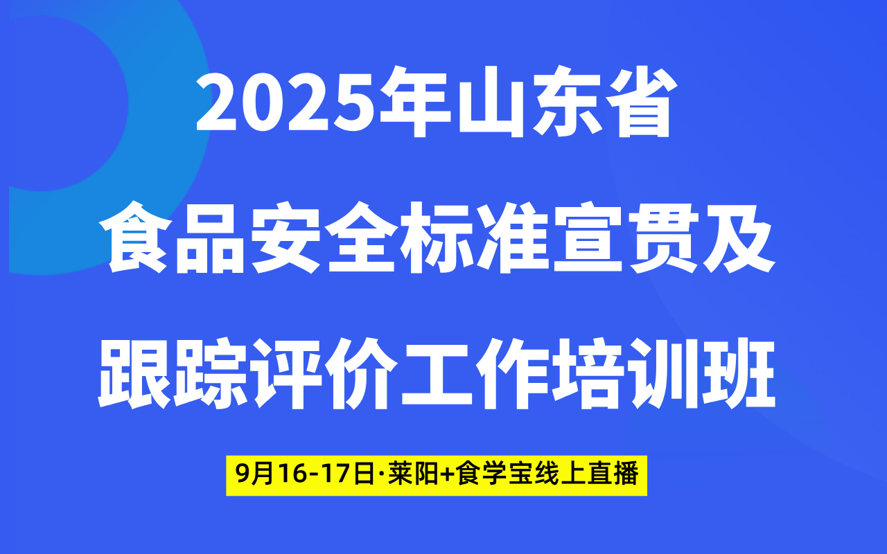 【免费培训】2025年山东省食品安全标准宣贯及跟踪评价工作培训班(莱阳 线上网络直播)