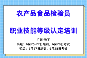 【4月】农产品食品检验员职业技能等级认定培训(广州·线下)