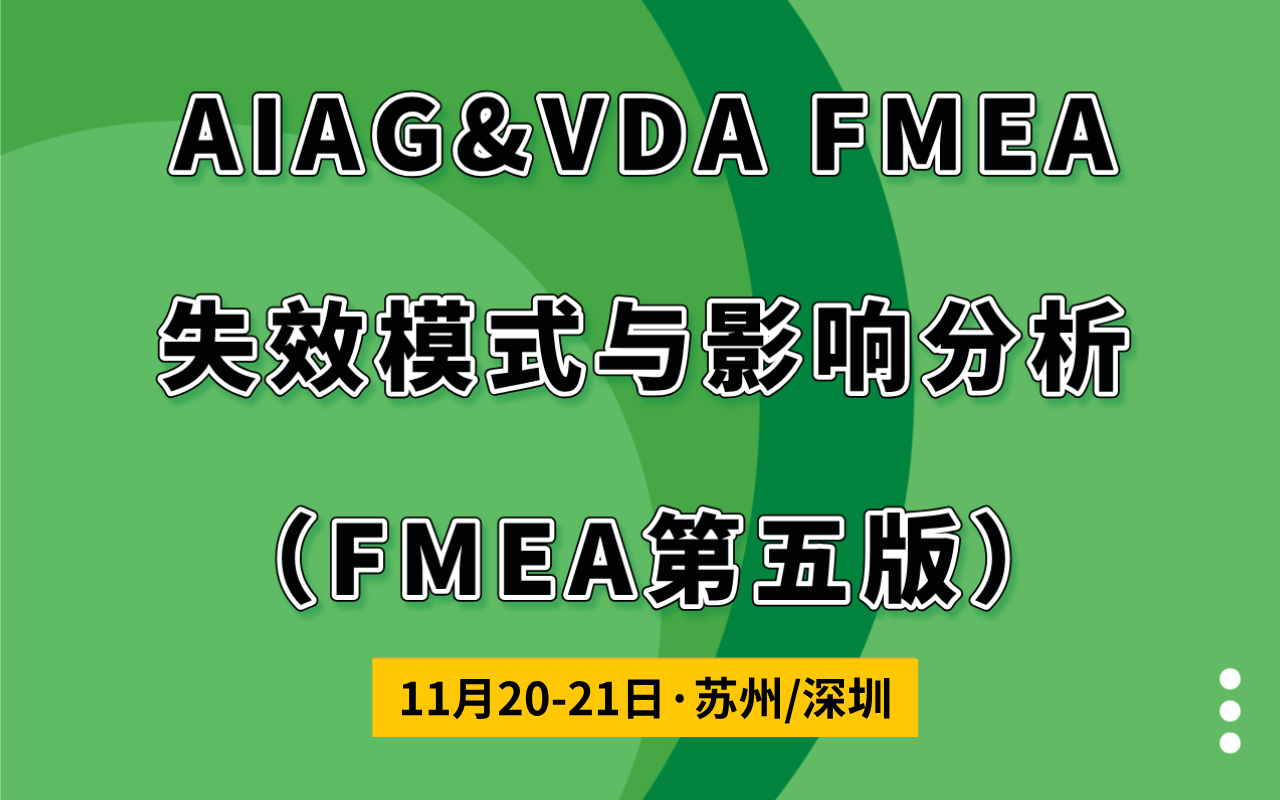 【11月】aiag&vda fmea失效模式与影响分析(fmea第五版)--苏州/深圳·线下